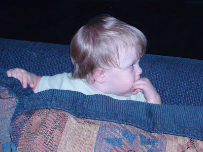 Yes, Kaitlyn is quite the daredevil. She will climb up and onto everything. Ryan was surprised the other day when he was in the kitchen, turned around and Kaitlyn was right there looking at him at eye level. She had moved a chair into the kitchen and climbed on top of it. She is constantly climbing on top of the coffee table and since we don't keep anything on it, we find the easiest solution is to just flip it over most of the time. She also likes to climb up on the couches and either jump up and down or hide behind the cushions. Her newest thing which really scares me is climbing onto the baby gate - on the other side of the baby gate is a very steep, very long flight of stairs so we have to be really careful with keeping an eye on her at all times. She hasn't figured out climbing out of the crib yet but I give her a month. According to Ryan's mom, Ryan was a real climber as well at Kaitlyn's age so apparently it's hereditary. I think Mom said Ryan was crawling out of his crib at 18 months already?